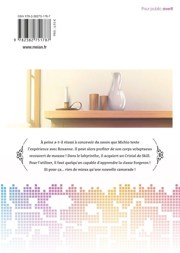 A peine a-t-il réussi à concevoir du savon que Michio tente l'expérience avec Roxanne. Il peut alors profiter de son corps voluptueux recouvert de mousse ! Dans le labyrinthe, il acquiert un Cristal de Skill. Pour l'utiliser, il faut quelqu'un capable d'apprendre la classe Forgeron ! Et pour ça... rien de mieux qu'une nouvelle camarade !