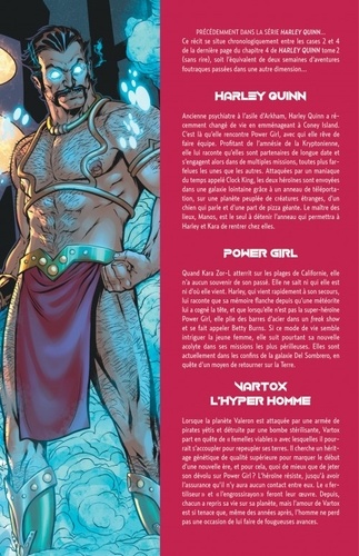 Embarquez pour une aventure cosmique sans précédent avec la puissante mais non moins séduisante Power Girl, et son binôme fortuit l'excentrique Harley Quinn ! Bloquées dans une dimension oubliée, et qui plus est sur la planète natale de l'amoureux transi Vartox, les deux héroïnes devront tout sacrifier pour se sortir du pétrin dans lequel elles se sont fourrées. Y compris peut-être leur dignité…