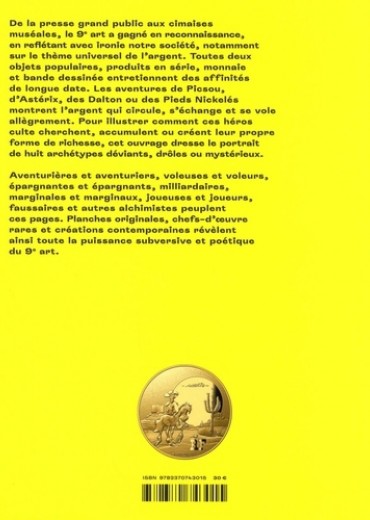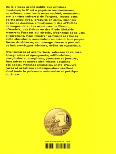 De la presse grand public aux cimaises muséales, le 9e art a gagné en reconnaissance, en reflétant avec ironie notre société, notamment sur le thème universel de l'argent. Toutes deux objets populaires, produits en série, monnaie et bande dessinée entretiennent des affinités de longue date. Les aventures de Picsou, d'Astérix, des Dalton ou des Pieds Nickelés montrent l'argent qui circule, s'échange et se vole allègrement. Pour illustrer comment ces héros culte cherchent, accumulent ou créent leur propre forme de richesse, cet ouvrage dresse le portrait de huit archétypes déviants, drôles ou mystérieux. Aventurières et aventuriers, voleuses et voleurs, épargnantes et épargnants, milliardaires, marginales et marginaux, joueuses et joueurs, faussaires et autres alchimistes peuplent ces pages. Planches originales, chefs-d'oeuvre rares et créations contemporaines révèlent ainsi toute la puissance subversive et poétique du 9e art.