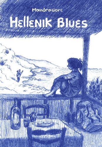 Le titre Hellenik blues fait référence au Rebetiko, un courant de musique grecque du type "chanson réaliste des bas-fonds" né dans les années trente dans les banlieues d'Athènes et Thessalonique au sein d'une population interlope d'immigrants de la Grèce d'Asie mineure, chassés par les turcs en 1922. Le livre pose plusieurs questions : quelle est la différence entre un touriste et un voyageur ? La limite est ténue. Quelle est la différence entre un voyage et une galère ? Encore plus vague. Mais c'est là tout le charme de la vie, rien n'est clair. Ainsi va Mandragore, accompagnée de son inséparable Goum, à la recherche de la Grèce de ses rêves d'enfants, sur les traces d'Ulysse, Dédale ou Agamemnon. L'oeil de l'ex-étudiante en histoire de l'art s'attardera donc dans les églises orthodoxes, au musée d'Archéologie d'Héraklion, aux sites antiques de Cnossos, de Mycènes, Mystra, Monemvassia, et celui de la musicienne dans les concerts de musique grecque à travers un récit de bande dessinée ponctué d'illustrations pleine page réalisées sur place. Mais la véritable âme grecque, l'Hellenik Blues, elle la trouvera à Athènes dans un club de Rebetiko, entre l'Ouzo et la danse... Passionnée par la Grèce, grande boulimique de voyages, Mandragore est aussi une artiste aux multiples facettes. Elle mène, à la fois, une carrière de chanteuse- musicienne et d'auteur de bande dessinée (ce qui l'a conduit naturellement à initier Les Contes Grafikofages, spectacle associant conte, musique et dessin simultané projeté sur écran). Elle développe également une activité d'éditrice au sein des éditions de L'uf, notamment en assurant la direction éditoriale d'ouvrages collectifs. Mandragore fait montre d'un regard qui lui est propre. Dans une forme parfois proche du reportage ou de l'interview dessinée, elle s'attache en particulier à faire partager au lecteur la dimension humaine de ses voyages. Ce qui lui donne l'opportunité en retour de reporter son regard du plus lointain (Nazdravi ! et Hellenik Blues) au plus proche (Les aventures de mon quartier, Bréhat). On relève aussi sa participation au livre collectif Les chansons d'Edith Piaf en bandes dessinées (Petit à Petit, 2003 et 2007). Elle vient tout juste d'achever son périple, Le rêve de Mandragore, qui l'a menée depuis juillet jusqu'en Ouzbékistan, toujours avec son compagnon Goum, sa harpe en bandoulière et son carnet de croquis à la main. Un livre-CD devrait voir le jour pour rendre compte de ces expériences. En outre, passionnée par la Grèce, elle fait partie d'un réseau d'héllenistes.