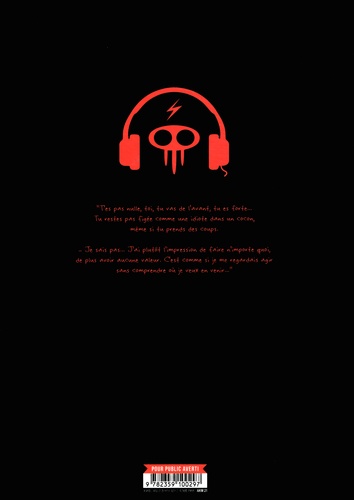 "Tu n'es pas nulle, toi, tu vas de l'avant, tu es forte... Tu reste pas figée comme une idiote dans un cocon, même si tu prend des coups. - Je sais pas... J'ai plutôt l'impression de faire n'importe quoi, de ne plus avoir aucune valeur. C'est comme si je me regardais agir sans comprendre où je veux en venir."