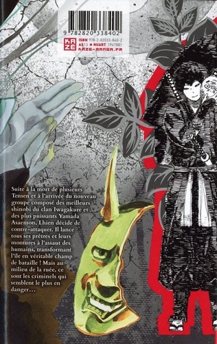 Suite à la mort de plusieurs Tensen et à l'arrivée du nouveau groupe composé des meilleurs shinobis du clan Iwagakure et des plus puissants membres Yamada Asaemon, Lhien décide de contre-attaquer. Il lance tous ses prêtres et leurs montures à l'assaut des humains, transformant l'île en véritable champ de bataille ! Mais au milieu de la ruée, ce sont les criminels qui semblent le plus en danger...
