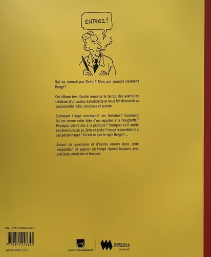 Qui ne connaît pas Tintin ? Mais qui connaît vraiment Hergé ? Cet album très illustré remonte le temps des aventures créatives d'un auteur autodidacte et nous fait découvrir sa personnalité riche, complexe et secrète. Comment Hergé concevait-il ses histoires ? Comment lui est venue cette idée d'un reporter à la houppette ? Pourquoi s'est-il mis à la peinture ? Pourquoi a-t-il arrêté Les Aventures de Jo, Zette et Jocko ? Hergé ressemblait-il à ses personnages ? Qu'est ce que le style Hergé ? ... Autant de questions et d'autres encore dans cette "exposition de papier" où Hergé répond toujours avec précision, modestie et humour.
