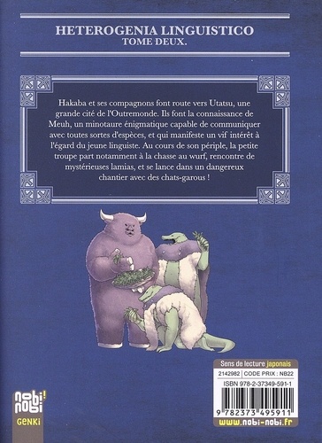 Hakaba et ses compagnons font route vers Utatsu, une grande cité de l'Outremonde. Ils font la connaissance de Meuh, un minotaure énigmatique capable de communiquer avec toutes sortes d'espèces, et qui manifeste un vif intérêt à l'égard du jeune linguiste. Au cours de son périple, la petite troupe part notamment à la chasse au wurf, rencontre de mystérieuses lamias, et se lance dans un dangereux chantier avec des chats-garous !