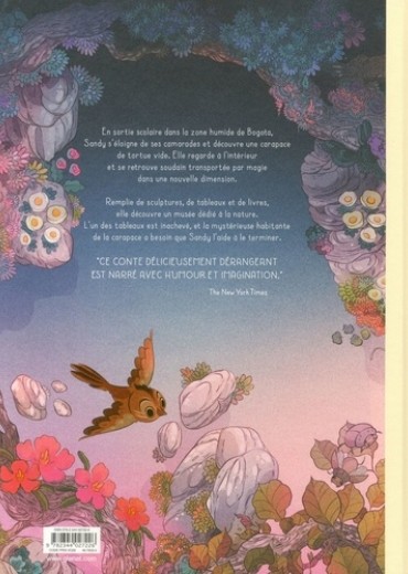 La création est le début du voyage... Lors d'un voyage scolaire à la rivière, Sandy s'éloigne du reste groupe et découvre une carapace de tortue vide. En jetant un oeil dans la cavité, elle plonge soudainement dans un monde magique. Emplie de sculptures, tableaux et autres grimoires, la carapace s'avère être un véritable musée sur l'histoire du monde, gardé par une tortue portant le nom d'Hicotea. Sauf qu'une peinture reste inachevée, elle a besoin de l'aide de Sandy pour la terminer... L'héroïne créative de Lorena Alvarez explore une nouvelle dimension merveilleuse dans ce deuxième volume des Lumières dans la nuit. Un roman graphique pour enfants au dessin somptueux, où l'étrangeté de Maurice Sendak et l'onirisme d'Hayao Miyazaki rejoignent le réalisme magique d'Amérique latine.