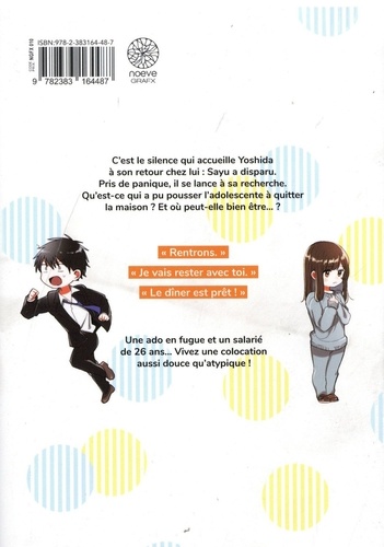 C'est le silence qui accueille Yoshida à son retour chez lui : Sayu a disparu. Pris de panique, il se lance à sa recherche. Qu'est-ce qui a pu pousser l'adolescente à quitter la maison ? Et où peut-elle bien être... ? " Rentrons. " "Je vais rester avec toi. " " Le dîner est prêt ! " Une ado en fugue et un salarié de 26 ans... Vivez une colocation aussi douce qu'atypique !