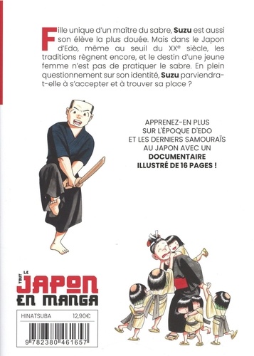 Fille unique d'un maître du sabre, Suzu est aussi son élève la plus douée. Mais dans le Japon d'Edo, même au seuil du XXe siècle, les traditions règnent encore, et le destin d'une jeune femme n'est pas de pratiquer le sabre. En plein questionnement sur son identité, Suzu parviendra-t-elle à s'accepter et à trouver sa place ? Apprenez-en plus Sur l'epoque d'Edo et les derniers samouraïs au Japon avec un documentaire illustré de 16 pages !
