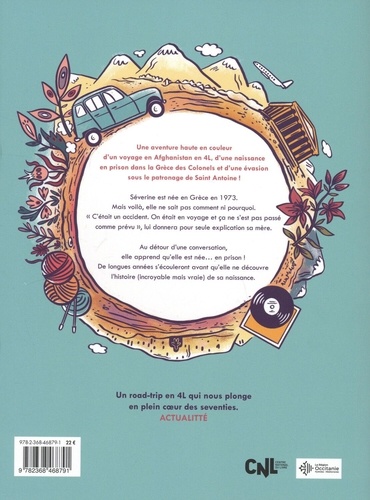 Une aventure haute en couleur d'un voyage en Afghanistan en 4L, d'une naissance en prison dans la Grèce des Colonels et d'une évasion sous le patronage de Saint Antoine ! Séverin est née en Grèce en 1973. Mais voila, elle ne sait pas comment ni pourquoi. "C'était un accident. On était en voyage et ça ne s'est pas passé comme prévu", lui donnera pour seule explication sa mère. Au détour d'une conversation, elle apprend qu'elle est née... en prison ! De longues années s'écouleront avant qu'elle ne découvre l'histoire (incroyable mais vraie) de sa naissance.