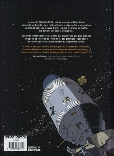 Le 16 juillet 1969, l'équipage d'Apollo 11 décolle de Floride pour une mission inédite : marcher sur la Lune. Cette fresque historique retrace la célèbre mission spatiale américaine dans un récit à haut rythme, entrecoupé par les avancées qui ont permis l'accomplissement d'une telle prouesse. La conquête lunaire ne se résume pas aux premiers pas de Neil Armstrong sur ce satellite, mais couvre des siècles d'observations, de recherches et de sacrifices. De la vénération de ce symbole au lancement du premier satellite artificiel, en passant par l'invention du télescope ou les atrocités nazies, ce livre documenté et précis reste accessible à tous et réjouira les passionnés comme les plus novices.