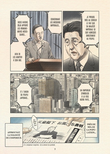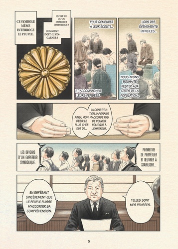 Prince et fils de l'empereur Hirohito, l'empereur Akihito a grandi en temps de guerre et a traversé la période de paix en tant que symbole. Aux côtés de sa compagne l'impératrice Michiko, il a honoré la paix instaurée par la Constitution, et il a souhaité incarner une cour impériale ouverte au peuple, en se plaçant toujours du côté des sans-voix. Ce manga retrace le parcours de cette âme immense.
