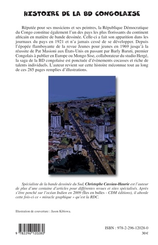 Réputée pour ses musiciens et ses peintres, la République Démocratique du Congo constitue également l'un des pays les plus florissants du continent africain en matière de bande dessinée. Celle-ci a fait son apparition dans les journaux du pays en 1921 et n'a jamais cessé de se développer. Depuis l'épopée flamboyante de la revue Jeunes pour jeunes en 1969 jusqu'à la réussite de Pat Masioni aux Etats-Unis en passant par Barly Baruti, premier Congolais à publier en Europe ou Mongo Sise, collaborateur du studio Hergé, la saga de la BD congolaise est ponctuée d'événements cocasses et riche de talents individuels. L'auteur revient sur cette histoire méconnue tout au long de ces 285 pages remplies d'illustrations.