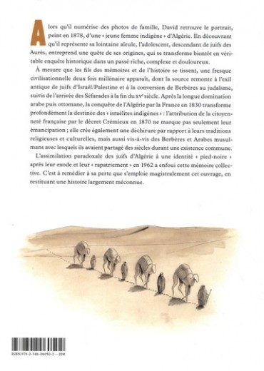 Alors qu'il numérise des photos de famille, David retrouve le portrait, peint en 1878, d'une "jeune femme indigène" d'Algérie. En découvrant qu'il représente sa lointaine aïeule, l'adolescent, descendant de juifs des Aurès, entreprend une quête de ses origines, qui se transforme bientôt en véritable enquête historique dans un passé riche, complexe et douloureux. A mesure que les fils des mémoires et de l'histoire se tissent, une fresque civilisationnelle deux fois millénaire apparaît, dont la source remonte à l'exil antique de juifs d'Israël/Palestine et à la conversion de Berbères au judaïsme, suivis de l'arrivée des Séfarades à la fin du XVe siècle. Après la longue domination arabe puis ottomane, la conquête de l'Algérie par la France en 1830 transforme profondément la destinée des "israélites indigènes" : l'attribution de la citoyenneté française par le décret Crémieux en 1870 ne marque pas seulement leur émancipation ; elle crée également une déchirure par rapport à leurs traditions religieuses et culturelles, mais aussi vis-à-vis des Berbères et Arabes musulmans avec lesquels ils avaient partagé des siècles durant une existence commune. L'assimilation paradoxale des juifs d'Algérie à une identité "pied-noire" après leur exode et leur "rapatriement" en 1962 a enfoui cette mémoire collective. C'est à remédier à sa perte que s'emploie magistralement cet ouvrage, en restituant une histoire largement méconnue.