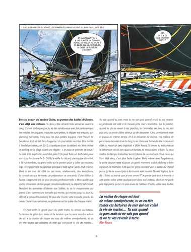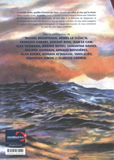 Le Vendée Globe, qualifié d'Everest des mers, raconté par celles et ceux qui le vivent, aventuriers des océans. Pendant plus de trois ans, Alexandre Chenet et Renaud Garreta sont allés à la rencontre de skippers partis à l'assaut de ce tour du monde sans égal. En mer, au coeur de la course, entre navigation et incidents techniques, choix stratégiques et engagement humain, ils nous emmènent au coeur de cette course légendaire qui passionne énormément de lecteurs.