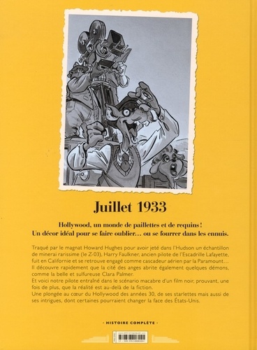 Hollywood, un monde de paillettes et de requins ! Un décor idéal pour se faire oublier... ou se fourrer dans les ennuis. Traqué par le magnat Howard Hughes pour avoir jeté dans l'Hudson un échantillon de minerai rarissime (le Z-03), Harry Faulkner, ancien pilote de l'Escadrille Lafayette, fuit en Californie et se retrouve engagé comme cascadeur aérien par la Paramount... Il découvre rapidement que la cité des anges abrite également quelques démons, comme la belle et sulfureuse Clara Palmer. Et voici notre pilote entraîné dans le scénario macabre d'un film noir, prouvant, une fois de plus, que la réalité est au-delà de la fiction. Une plongée au coeur du Hollywood des années 30, de ses starlettes mais aussi de ses intrigues, dont certaines pourraient changer la face des Etats-Unis.