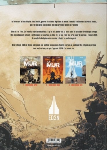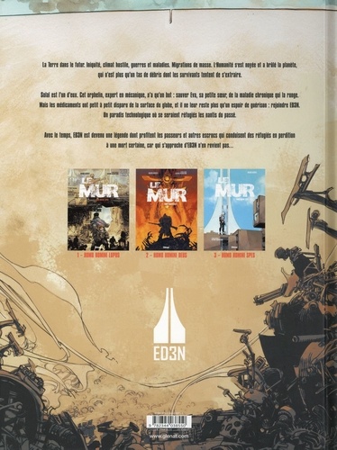 Les fondements du Mur. Solal a réussi à pénétrer dans l'enceinte du Mur et va enfin pouvoir trouver les médicaments dont sa soeur a besoin. Mais ce supposé paradis terrestre n'est que chimère. Il n'est qu'une prison à ciel ouvert de plus... Pire ! N'y vivent que des " sans vies ", âmes perdues se nourrissant de la chaleur des corps vivants. Comment ces hommes et ces femmes se sont-ils transformés en ces monstres hagards ? Qui est l'architecte de cette ignoble frontière ? Réponse dans ce second tome haletant qui revient en partie sur l'origine du Mur et de son fondateur : Noah. Entre la radicalité de Mad Max et le nihilisme de The Walking Dead, Le Mur nous plonge dans un maelstrom de poussière, de rouille et de sang. Une prouesse graphique pour un road movie sauvage et post-apocalyptique qui, dans la plus pure tradition du genre, nous interroge sur le devenir de l'humanité et les conséquences de nos actes.