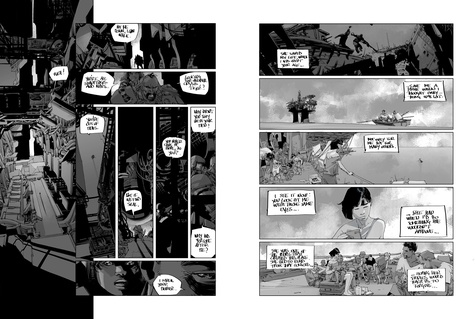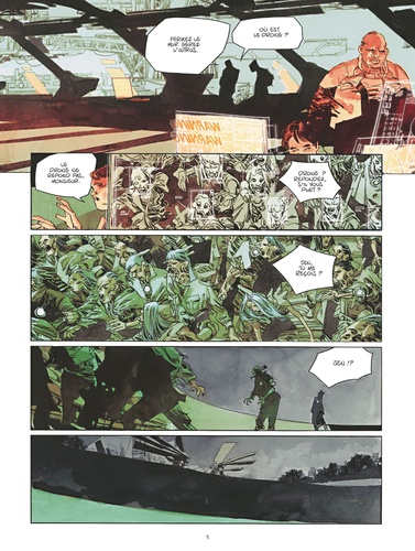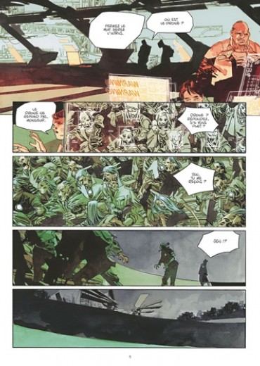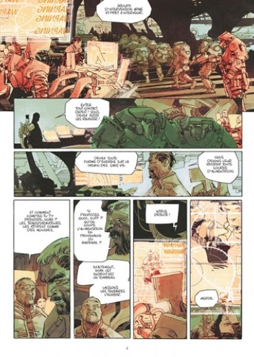L'effondrement. A la naissance de Jen, ses jambes ne fonctionnent pas. Son père, grand penseur du projet Eden, parvient des années après le lancement de sa cité emmurée à trouver un moyen de sauver sa fille : un orbe à la technologie révolutionnaire qu'il faut placer au niveau du coeur. L'appareil a notamment la faculté d'aspirer de manière autonome les ressources nécessaires à la survie de son porteur. Mais quand Jen et son frère Janus se le font implanter, l'outil est mal réglé. Si mal, qu'il pousse ses hôtes à se nourrir de la vie des êtres alentours. Une fois l'énergie de ces êtres consommée, ces derniers ne meurent pas tout à fait. L'orbe a fusionné en eux, ils en deviennent les esclaves insatiables et cherchent à leur tour une source d'énergie afin de contenter son appétit. C'est ainsi, en se démultipliant, que l'orbe a contaminé Eden, transformant ce lieu de privilèges en cimetière latent. Mais les choses sont sur le point de changer. Le gardien des lieux, l'impitoyable drone Cerberus vient de passer en mode automatique. Tout objet mouvant est dorénavant une cible et seul le courage, l'inconscience et le sacrifice sauront annihiler cette machine à la force de frappe destructrice. Solal, Eva, Jen, Janus, le groupe B. A. S. T. A. R. D. S et Chandra, ils auront tous un rôle à jouer dans le baroud d'honneur de cet ancien paradis devenu enfer. Dernier tome frénétique et étourdissant pour Le Mur qui, entre la radicalité de Mad Max et le nihilisme de The Walking Dead, parvient une nouvelle fois à nous plonger dans un maelstrom de poussière, de rouille et de sang. Une prouesse graphique pour un road movie sauvage et post-apocalyptique qui, dans la plus pure tradition du genre, nous interroge sur le devenir de l'humanité et les conséquences de nos actes.