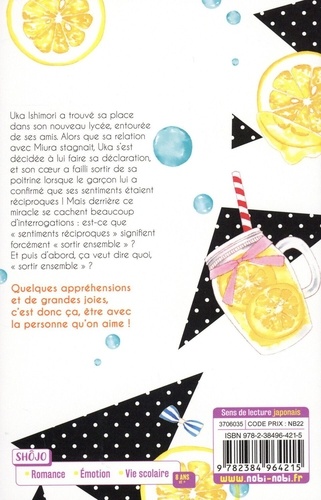 Uka Ishimori a trouvé sa place dans son nouveau lycée, entourée de ses amis. Alors que sa relation avec Miura stagnait, Uka s'est décidée à lui faire sa déclaration, et son coeur a failli sortir de sa poitrine lorsque le garçon lui a confi rmé que ses sentiments étaient réciproques ! Mais derrière ce miracle se cachent beaucoup d'interrogations : est-ce que "sentiments réciproques" signifient forcément "sortir ensemble" ? Et puis d'abord, ça veut dire quoi, "sortir ensemble" ? Quelques appréhensions et de grandes joies, c'est donc ça, être avec la personne qu'on aime !