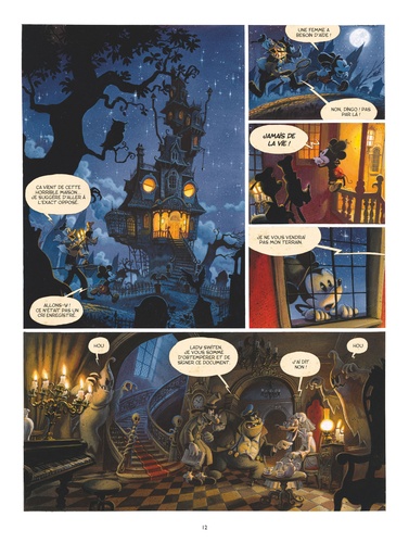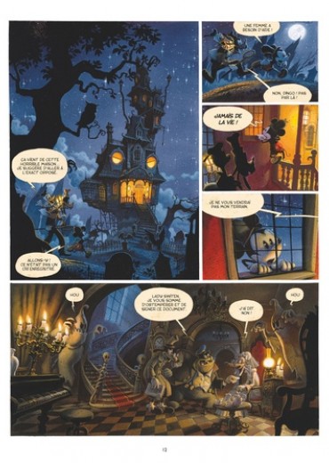 Oserez-vous franchir la grille de Horrifikland ? Disparition. Mickey, Donald et Dingo tiennent une agence de détective. Sauf que les affaires tournent moyennement : pas un contrat en vue depuis des jours ! Mickey songe même sérieusement à plier boutique, lorsqu'une vieille dame leur charge de retrouver son petit chat Blacky. Problème : celui-ci aurait été aperçu pour la dernière fois prêt du terrifiant parc abandonné " Horrifikland ", dont certaines attractions fonctionnent toujours... Au programme : brouillard artificiel, décor de cimetière, chauves-souris et fantômes plus vrais que nature ! Pour retrouver Blacky, les nerfs de nos acolytes seront mis à rude épreuve... Rejoignant le prestigieux casting des dessinateurs de créations originales Disney, Alexis Nesme nous propose, de son somptueux travail en couleurs directe, un univers gothique et baroque digne des superproductions de Tim Burton. A l'écriture, Lewis Trondheim nous réjouit d'un scénario riche en rebondissements qui n'est pas sans rappeler les meilleurs épisodes de Scooby Doo !
