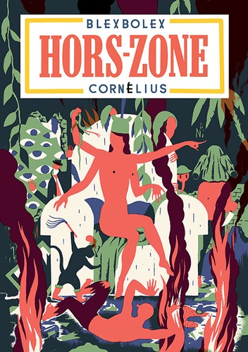 Hors Zone est un environnement hostile, un no man’s land imaginaire dans lequel la réalité et les êtres sont mis à mal, un univers chaotique qui se reflète dans un rapport au langage déstructuré. Blexbolex impose l’utilisation de l’argot au-delà de la simple recherche du bon mot et l’utilisation de tournures ordurières sont autant de symptômes de la violence de ce monde malade, où l’homme se trouve en constante opposition avec l’ordre établi. Les mots se bousculent dans un flot continu, sans répit, dans une course poursuite où il est impossible de reprendre son souffle si l’on ne veut succomber à une mort certaine. Ces mots mis bout à bout renvoient rageusement aux superpositions de motifs et de couleurs dans le dessin, à la manière des collages de William Burroughs.