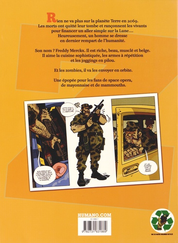 Los Angeles, en 2064. Les morts sont sortis de leurs tombes et obligent les vivants à s’en accommoder. Millionnaire pendant un bref laps de temps, Freddy vient de perdre tout son argent, au moment funeste où des zombies enlèvent ses enfants et réclament une rançon. Accompagné de son compère Karl, il décide de prendre l’argent où il est, c’est-à-dire de dépouiller des morts-vivants en partance pour la Lune… Une intrigue délirante et loufoque et des dialogues mordants, signés Jerry Frissen au meilleur de sa forme !