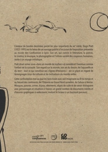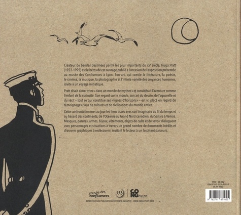 Créateur de bandes dessinées parmi les plus importants du XXe siècle, Hugo Pratt (1927-1995) est le héros de cet ouvrage publié à l'occasion de l'exposition présentée au musée des Confluences à Lyon. Son art, qui convie la littérature, la poésie, le cinéma, la musique, la photographie et l'infinie variété des croyances humaines, invite à un voyage initiatique. Pratt disait aimer vivre "dans un monde de mythes" et considérait l'aventure comme l'enfant de la curiosité. Son regard sur le monde, son art du dessin, de l'aquarelle et du récit - tout ce -qui constitue ses "lignes d'horizons" - est ici placé en regard de témoignages issus de cultures et de civilisations du monde entier. Cette confrontation met au jour les liens tissés avec son imaginaire au fil du temps et au hasard des continents, de l'Océanie au Grand Nord canadien, du Sahara à Venise. Masques, parures, armes, bijoux, vêtements, objets de culte et de savoir dialoguent avec personnages et situations à travers un grand nombre de documents inédits et d'oeuvres graphiques à redécouvrir, invitant le lecteur à un fascinant parcours.