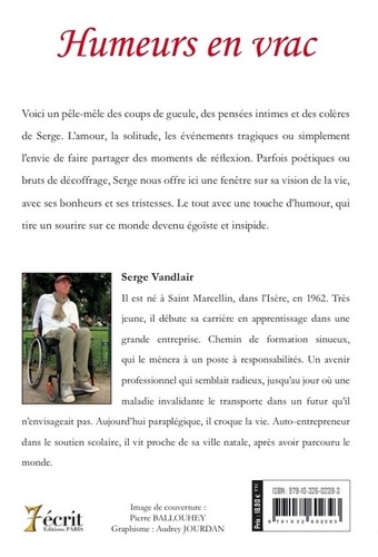 Voici un pêle-mêle des coups de gueule, des pensées intimes et des colères de Serge. L'amour, la solitude, les événements tragiques ou simplement l'envie de faire partager des moments de réflexion. Parfois poétiques ou bruts de décoffrage, Serge nous offre ici une fenêtre sur sa vision de la vie, avec ses bonheurs et ses tristesses. Le tout avec une touche d'humour, qui tire un sourire sur ce monde devenu égoïste et insipide.
