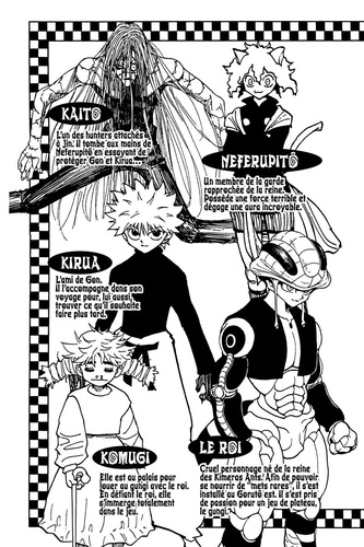Face à Yupî, Knuckle se retrouve dans une impasse, mais grâce à l’attaque éclair de Kirua, il s’en sort de justesse ! Il doit agir au plus vite et se relance dans la bataille. Au même moment, Gon, qui est au chevet de Komugi, voit apparaître...?!