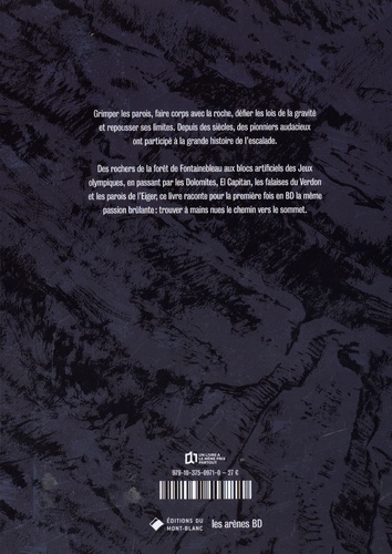 Grimper les parois, faire corps avec la roche, défier les lois de la gravité et repousser ses limites. Depuis des siècles, des pionniers audacieux ont participé à la grande histoire de l'escalade. Des rochers de la forêt de Fontainebleau aux blocs artificiels des Jeux olympiques, en passant par les Dolomites, El Capitan, les falaises du Verdon et les parois de l'Eiger, ce livre raconte pour la première fois en BD la même passion brûlante : trouver à mains nues le chemin vers le sommet.