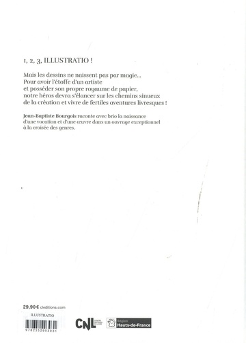 I, 2, 3, Illustratio ! Mais les dessins ne naissent pas par magie... Pour avoir l'étoffe d'un artiste et posséder son propre royaume de papier, notre héros devra s'élancer sur les chemins sinueux de la création et vivre de fertiles aventures livresques