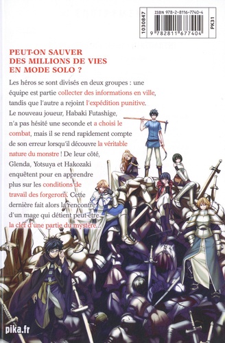 Les héros se sont divisés en deux groupes : une équipe est partie collecter des informations en ville, tandis que l'autre a rejoint l'expédition punitive. Le nouveau joueur, Habaki Futashige, n'a pas hésité une seconde et a choisi le combat, mais il se rend rapidement compte de son erreur lorsqu'il découvre la véritable nature du monstre ! De leur côté, Glenda, Yotsuya et Hakozaki enquêtent pour en apprendre plus sur les conditions de travail des forgerons. Cette dernière fait alors la rencontre d'un mage qui détient peut-être la clef d'une partie du mystère...