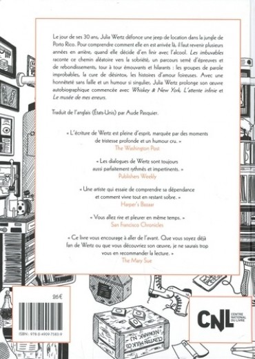 L'alcoolsime et les tentatvives aléatoires pour s'en sortir, raconté par l'hilarante Julia Wertz. Dans cette autobiographie sarcastique, la célèbre bédéaste américaine Julia Wertz raconte ses tentatives aléatoires de sobriété et le cycle incessant, étonnamment drôle, et parfois absurde, de la dépendance et de la guérison. Une longue épopée qui va durer cinq ans et durant laquelle se succèdent des séances de thérapie de groupe, des rechutes, des aventures désastreuses et une expulsion sans ménagement de son appartement à New York. Loin du témoignage édifiant de la guérison de la toxicomanie, " Impossible People " raconte que la sobriété est un chemin semé d'embûches, qui alterne les tentatives et les rechutes. Avec une honnêteté sans faille et un humour si singulier, Julia Wertz prolonge son oeuvre autobiographique commencée avec La fête du prout, Whiskey & New York et L'attente infinie.
