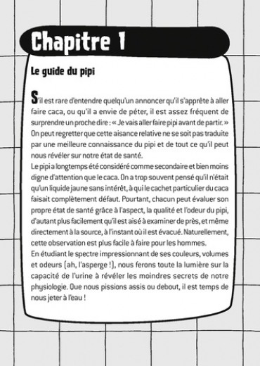 Rien ne se perd, tout se transforme ! Il en va ainsi de la vie secrète de nos intestins ! Après le succès sans conteste de In caca veritas, ce nouvel opus nous livre en toute indiscrétion les éclaircissements indispensables sur les splendeurs et mystères qui entourent la cuvette... Décryptés par des professionnels hors pair, Pipi, caca et pets font ici l'objet d'une étude aussi minutieuse qu'hilarante, mise en images avec brio par un Tebo qui tient mieux que jamais son sujet. En vérité, après la lecture de ces pages, vous devriez normalement vous sentir totalement décomplexé en plus d'être savant !