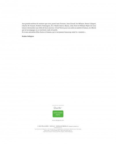 Le diptyque Loup de Pluie réuni en une superbe intégrale ! Dufaux et Pellejero, deux grands auteurs de la bande dessinée européenne, se réunissent pour ce magnifique western crépusculaire. Un western sur la différence entre deux peuples, entre deux classes, entre un homme et une femme. Le trait et les couleurs du dessinateur catalan se déploient dans ce très grand format. Et en exclusivité, un cahier supplémentaire richement illustré par des inédits de Pellejero !
