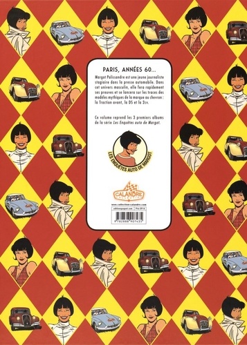 Paris, années 60... Margot Palissandre est une jeune journaliste stagiaire dans la presse automobile. Dans cet univers masculin, elle fera rapidement ses preuves et se lancera sur les traces des modèles mythiques de la marque au chevron : la Traction avant, la DS et la 2cv. Ce volume reprend les 3 premiers albums de la série Les Enquêtes auto de Margot.