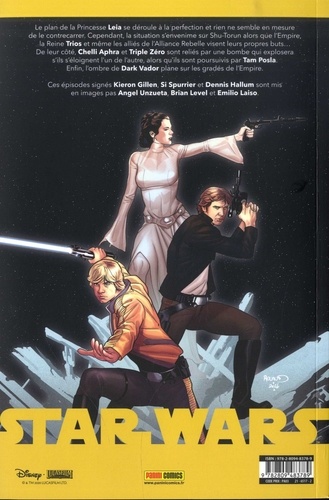Le plan de la Princesse Leia se déroule à la perfection et rien ne semble en mesure de le contrecarrer. Cependant, la situation s'envenime sur Shu-Torun alors que l'Empire, la Reine Trios et même les alliés de l'Alliance Rebelle visent leurs propres buts... De leur côté, Chelli Aphra et Triple Zéro sont reliés par une bombe qui explosera s'ils s'éloignent l'un de l'autre, alors qu'ils sont poursuivis par Tam Posla. Enfin, l'ombre de Dark Vador plane sur les gradés de l'Empire. Ces épisodes signés Kieron Gillen, Si Spurrier et Dennis Hallum sont mis en images par Angel Unzueta, Brian Level et Emilio Laiso.