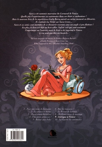 Une enquête trépidante au milieu de costumes féériques, un chassé-croisé masqué pour une intrigue pleine de rebondissements ! Sara a été nommée marraine du Carnaval de Venise. Quelle joie d'expérimenter ses automates dans un décor si enchanteur ! Mais le nouveau livre de la mystérieuse Lady Berry paraît au même moment en librairie et s'intitule La Vérité sur Sara Crewe ! Sara et ses amis sont mortifiés de se découvrir racontés sous un angle si peu flatteur ! Dès sa sortie, le livre est déjà un best-seller. Nul ne sait qui sont l'imprimeur ou l'auteure, mais le livre a été imprimé à Venise. ça ne peut pas être un hasard...