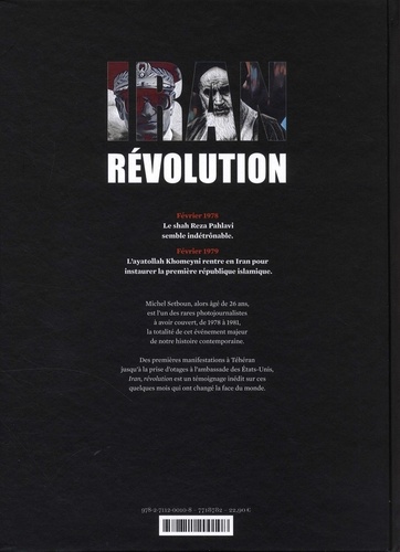 Février 1978, Le shah Reza Pahlavi semble indétrônable. Février 1979, L'ayatollah Khomeyni rentre en Iran pour instaurer la première république islamique. Michel Setboun, alors âgé de 26 ans, est l'un des rares photojournalistes à avoir couvert, de 1978 à 1981, la totalité de cet événement majeur de notre histoire contemporaine. Des premières manifestations à Téhéran jusqu'à la prise d'otages à l'ambassade des Etats-Unis, Iran, révolution est un témoignage inédit sur ces quelques mois qui ont changé la face du monde.