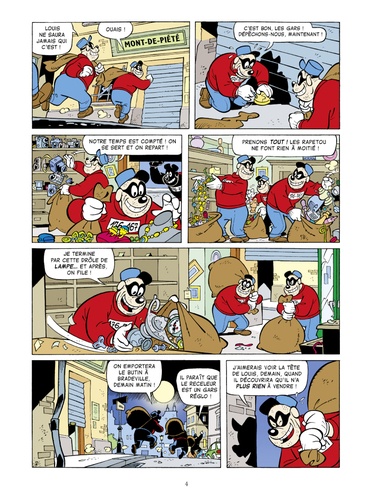 Frères et cousins qui se ressemblent tous et qui s'habillent de la même façon, pas facile de distinguer les Rapetou ! 2, 3, 4, 6, 7 voire des centaines parfois, personne ne connaît leur nombre exact. Le seul moyen de les différencier est le matricule de prisonnier que chacun porte fièrement sur la poitrine et qui fait office de nom. Ils ont beau être des as du cambriolage, il est tout de même une serrure qu'ils n'ont jamais réussi à forcer : celle du coffre-fort d'un certain Balthazar Picsou et ce n'est pas faute d'essayer ! Ce nouveau one shot de la collection des Grands Héros Disney n'est pas consacré à un mais bien à plusieurs "héros", puisqu'il compile les meilleures aventures de ces irrécupérables Rapetou, les pires ennemis de Picsou !