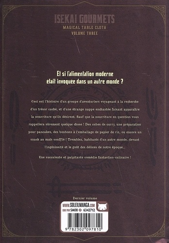 Voici l'histoire d'un groupe d'aventuriers voyageant à la recherche d'un trésor et d'une étrange nappe enchantée faisant apparaître de la nourriture. Sauf que la nourriture en question vient de notre époque moderne ! Et voilà que se retrouvent invoqués un pot de glace vanille et des bonbons à la limonade ! Avec le goût de ces mets divins, nos aventuriers ne sont pas au bout de leurs surprises !