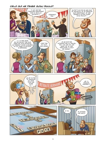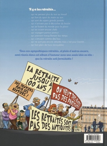 Une BD pour le plus répandu des métiers ! Il y a : celui qui voudrait continuer à travailler, celui qui emmerde le monde, celui qui en profite pour voir ses petits-enfants, celui qui s'arrange pour ne pas les voir, celui qui voyage autour du monde, celui qui ne quitte pas son fauteuil... vous voyez de qui il s'agit ? Les retraités, bien sûr ! Ils sont quinze millions en France, et puisqu'ils n'ont rien à faire de leurs journées, Jacky Goupil et Ohazar se sont dit qu'ils allaient leur proposer une BD rien que pour eux ! Traitée sous forme de gags en une planche, cette nouvelle série raconte les mille et une facettes du plus répandu des métiers : la retraite. Des albums à lire par ceux qui ont déjà les doigts de pied en éventail (il faut bien les occuper), ou à offrir à ceux qui y partent : plus de 600 000 chaque année !