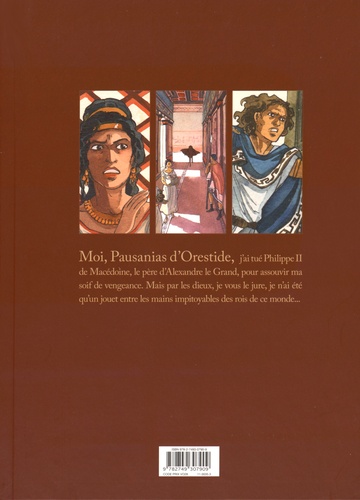 En 337 avant J.-C., le roi Philippe II de Macédoine est au summum de son règne. Il a fait de son pays un royaume puissant et respecté par toute la Grèce. Sa succession est assurée en la personne d'Alexandre, né de son union avec Olympias, sa 4ème épouse. À présent, ce boiteux borgne de 45 ans s'apprête à se marier pour la 7ème fois, avec la jeune Cléopâtre, tout en préparant l'invasion de l'Asie. Il n'aura pas le temps de mener à bien tous ces projets puisqu'il meurt assassiné en juillet 336. Un régicide qui permettra à un jeune homme d'à peine 20 ans de devenir le plus grand conquérant au monde. L'Histoire n'a retenu que le nom du bras armé : Pausanias d'Orestis, le garde du corps de Philippe. Mais qui sont les véritables responsables ?