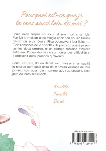 Après avoir surpris sa soeur et son mari ensemble, Ran fuit la maison et se réfugie chez son cousin Hikaru. Désormais seuls, Jun et Ritsu poursuivent leur liaison... Mais l'absence de la cadette et le poids du passé pèsent sur les deux amants, et un étrange malaise s'installe entre eux. Parviendront-ils à surmonter ces difficultés et à redevenir aussi proches qu'avant ? Dans Jalouses, Battan décrit avec finesse et sensualité la relation complexe entre deux soeurs victimes de leur passé, mais aussi d'un homme qui, trop souvent, s'est joué de leurs sentiments...