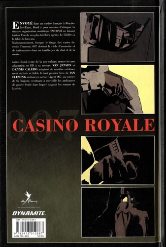 A l'occasion de la sortie sur grand écran de No Time to Die, le 25e film mettant en scène James Bond, c'est au tour d'une adaptation fidèle du roman d'origine, Casino Royale, de rejoindre le catalogue Contrebande. Les débuts littéraires de l'agent 007 - membre du British Secret Service - de Ian Fleming sont adaptés ici en BD par Van Jensen et Denis Calero dans un véritable roman graphique qui respecte l'ambiance de Casino Royale. Envoyé vers le casino français de Royale-les-Eaux, Bond a pour objectif d'éliminer la menace du meurtrier baptisé 'Le Chiffre'...