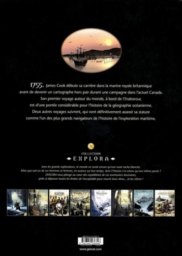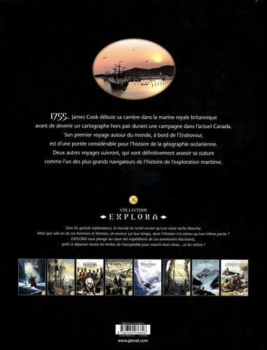 Explorer pour éclairer l'humanité. Doté d'un grand sens marin et très doué pour la cartographie, James Cook est sans conteste l'un des plus grands navigateurs de l'histoire de l'exploration maritime. Ce capitaine anglais de la Royal Navy a consacré l'essentiel de sa carrière à naviguer autour du globe, et notamment dans l'océan Pacifique où ses voyages ont donné lieu à de nombreuses découvertes et cartes qui ont changé notre vision du monde. James Cook débute sa carrière dans la marine royale britannique en 1755, avant de devenir un cartographe hors-pair durant une campagne dans l'actuel Canada. Son premier voyage autour du monde, à bord de l'Endeavour, est d'une portée considérable pour l'histoire de la géographie océanienne et va asseoir sa stature. Deux autres voyages suivront, au cours desquels, entre autres, il effectue le tour complet de la Nouvelle-Zélande, explore la Nouvelle-Calédonie, s'approche du continent Antarctique, étudie l'île de Pâques, apporte la preuve que le grand continent austral supposé n'existe pas et découvre Hawaï ("Iles Sandwich" à l'époque) où il trouvera la mort en 1779 dans des circonstances particulièrement tragiques. Après avoir écrit les formidables romans graphiques Terra Australis et Terra Doloris, consacrés à la naissance de l'Australie moderne, LF Bollée retourne dans l'hémisphère sud et les terres australes pour rendre un hommage passionné à l'un des plus grands explorateurs de tous les temps à travers deux nouveaux albums de la collection "Explora" dessinés avec brio par Federico Nardo qui peut à nouveau exprimer pleinement son goût pour l'aventure et les grands espaces.