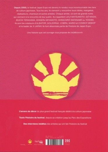 Depuis 2000, le festival Japan Expo est devenu le rendez-vous incontournable des fans de culture japonaise. Tous les ans, ils viennent y rencontrer leurs idoles, mangakas, réalisateurs, chanteurs et autres artistes. Chaque année, ce sont de grands noms qui viennent à la rencontre de leur public. Ils s'appellent Leiji Matsumoto, Go Nagai, Buichi Terasawa, Shigeru Miyamoto, Shinichiro Watanabe ou Yoshiki. Ils sont les créateurs d'Albator, Goldorak, Cobra, Mario et Cowboy Bebop et le leader de X-Japan. Ils font désormais partie de l'histoire de Japan Expo. Une histoire que cet ouvrage vous propose de (re)découvrir. L'envers du décor du plus grand festival français dédié à la culture japonaise. Toute l'histoire du festival, depuis sa création jusqu'au Parc des Expositions. Des interviews inédites des artistes qui ont fait l'histoire du festival.