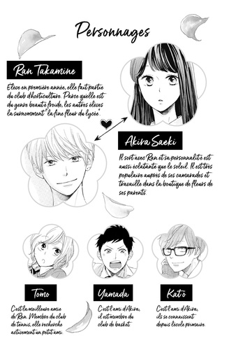 QUAND LE LANGAGE DES FLEURS DEVIENT CELUI DU COEUR ! Lors de leur première Saint-Valentin en tant que couple, Ran et Akira échangent leur tout premier baiser ! Si la jeune fille est aux anges, elle va vite redescendre sur terre... Maintenant qu'ils entrent en deuxième année, les tourtereaux seront dans des classes séparées ! Bien qu'un peu tristes tous les deux, ils en profitent pour se promettre d'approfondir et de renforcer le lien qui les unit, scellant le tout par un deuxième baiser ! Le lendemain, alors que Ran sent encore les lèvres d'Akira sur les siennes, elle tombe sur un étrange garçon, en train de malmener les parterres de l'école !