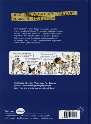 DECOUVREZ L'EXTRAORDINAIRE EPOPEE DE JASON... TOUT EN BD ! Pour récupérer le trône de son père, Jason a promis d'aller chercher la Toison d'Or, une peau de bélier magique cachée à l'autre bout du monde. D'innombrables dangers le guettent mais il peut compter sur des alliés de choix : toute une armée de demi-dieux, un bateau enchanté, un puissant devin... Et surtout Médée la belle magicienne, la fi lle d'AEétès, son pire ennemi. Embarquez à bord de l'Argo avec l'un des plus glorieux héros de la mythologie grecque pour vivre une aventure épique et mythique !