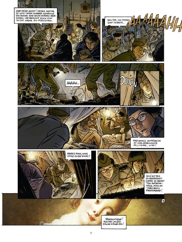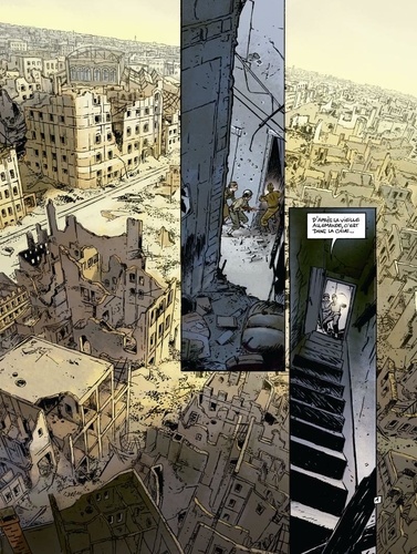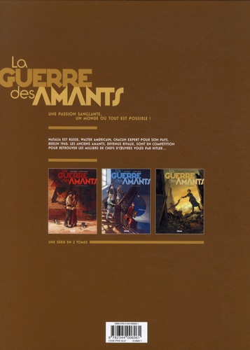 13 juillet 1945. Les troupes Alliées parcourent les ruines de Berlin encore fumantes. Parmi les forces américaines, Walter fait partie de la MFAA, autrement appelée la division des « Monuments Men ». Sa mission : explorer ce qu'il reste des lieux culturels de la capitale pour tenter de sauver les œuvres d'art épargnées par les bombes. En effet, dès 1940, Hitler avait pillé l'Europe entière de ses chefs-d'œuvre pour la création d'un musée à sa gloire. Et ce sont des Vermeer, Van Eyck, Lautrec et autres Picasso qui se cachent ainsi sous les décombres. Un trésor qui fait des envieux, car les troupes russes se livrent également à une chasse à l'art. Et Walter ignore que celle qui est à la tête de la « Mission trophée » ordonnée par Staline n'est autre que... son ancien amour, Natalia !Jack Manini et Olivier Mangin concluent leur ambitieux triptyque La Guerre des amants : une romance passionnée où l'art devient une arme à double tranchant, dont le tome 1 a reçu le Prix Historia de la BD historique. En fin d'ouvrage, un cahier pédagogique de 8 pages rédigé par l'historienne Emmanuelle Polack, éclaire le contexte évoqué dans cet album, à savoir les œuvres d'art volées par les Nazis avant la seconde guerre mondiale.