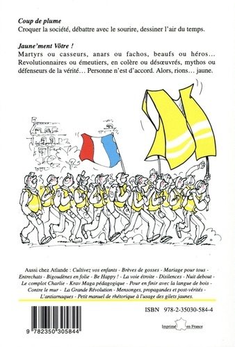 Coup de plume : Croquer la société, débattre avec le sourire, dessiner l'air du temps. Jaune'ment Vôtre ! Martyrs ou casseurs, anars ou fachos, beaufs ou héros... Revolutionnaires ou émeutiers, en colère ou désoeuvrés, mythos ou défenseurs de la vérité... Personne n'est d'accord. Alors, rions... jaune.