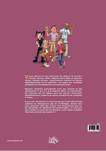 Cette BD, sur le thème des conduites à risques à l'adolescence, est le résultat d'ateliers participatifs avec des jeunes à qui il a été proposé d'en être coscénaristes. Il y a 3 garçons et 2 filles autour desquels les histoires se focalisent. Jaze, 15 ans et sa soeur Isa, 16 ans. Kwet, 14 ans, Paulo, 14 ans et Jess, 13 ans. Les histoires concernent des événements autour des conduites à risque des jeunes (entre 13 et 16 ans). Il y a des histoires plus ou moins compliquées avec des issues plus ou moins heureuses, mais toujours dans une mise à distance grâce à la dérision, à la caricature et à l'humour décalé. Après avoir collaboré quelques temps au journal "Spirou" , le dessinateur et coscénariste Laurent Bordier publie des albums aux éditions Vents d'Ouest. Parallèlement, il illustre des jeux de cartes pédago-ludiques qui rencontrent un joli succès sur le thème des addictions chez les adolescents sur lequel a aussi travaillé Cédric Kempf, le scénariste. Laurent dessine actuell